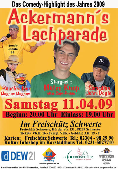 Zum Beispiel mit: Matze Knop (Supa Richie), Jürgen  Bangert (Elvis Eifel), Heinz Gröning (Der unglaubliche Heinz),